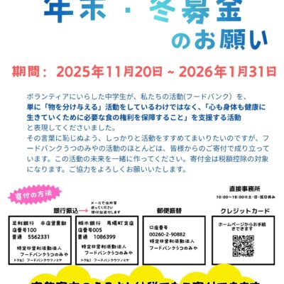賞味期限が残っているけれど、食べる予定のない食品がございましたら、会場までお持ちください。